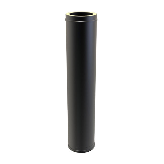 The outer skin to our 1m 8" twin wall is manufactured from 304 grade stainless steel and is 0.4mm thick, the flue can be powder coated in a high temperature black finish. The fully welded inner skin of the flue is produced from 316 grade stainless steel and is also 0.4mm thick. The insulation is compressed rockwool giving a density of 128kgper cubic metre.