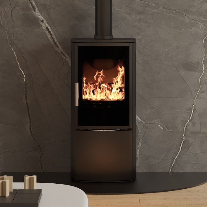 With a nominal heat output of 5 kW (ranging from 3.5 kW to 8.5 kW), the Neo XC effectively heats standard-sized rooms up to approximately 70 m³. It boasts Ecodesign Ready performance and is DEFRA exempt, making it compliant with ultra-low-emission requirements and ideal for use in Smoke Control Areas. Its advanced airwash system ensures the expansive glass stays soot-free, while a precision control dial enables simple burn rate adjustment.