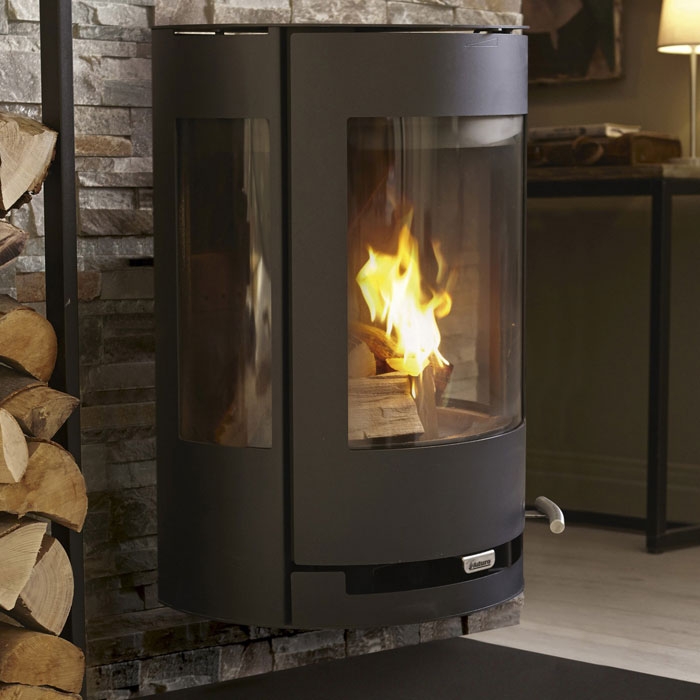 The Aduro 9-4 stove is an elegant wall mounted wood burner which gives the look of a floating fire. With a large curved window at the front and 2 smaller windows at the side, the Aduro 9-4 allows for an 180 degree view of the flickering flames. The Aduro 9-4 also boasts an impressive airwash system which will help to keep the glass soot free.