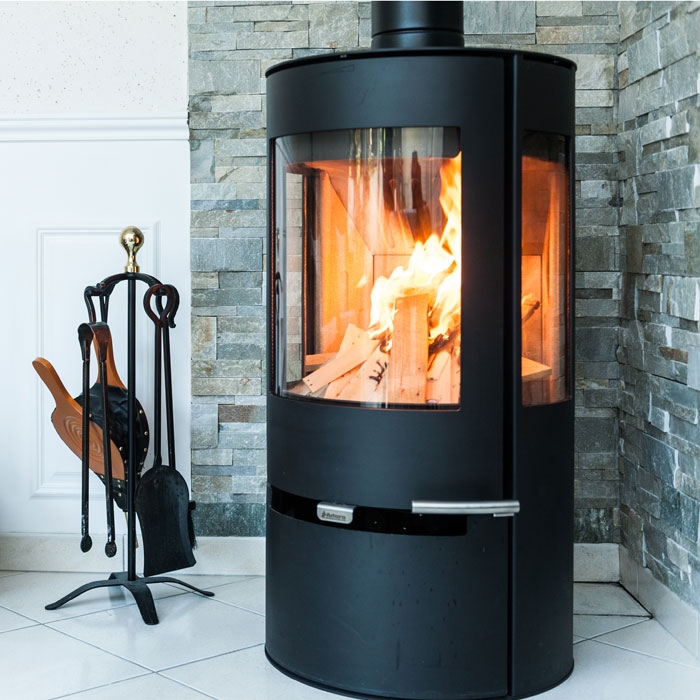 The Aduro 9 is beautifully designed freestanding stove with a rounded body and 3 curved glass panels which maximise the appearance of the flames from all corners of the room. The Aduro 9 features three air supplies for optimal combustion and the air blowing at the inner surface of the glass helps to keep the glass free from soot.