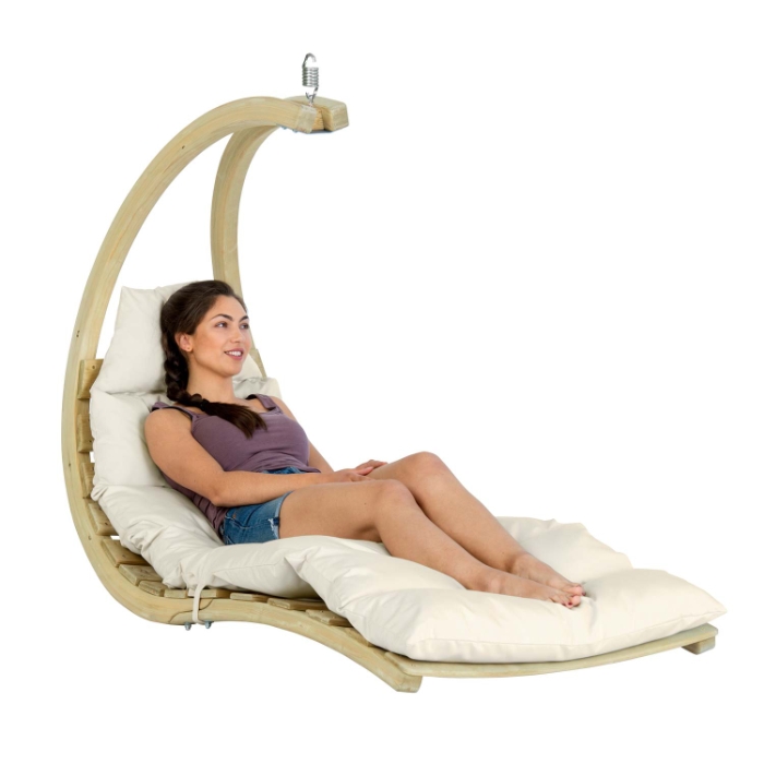 Included with this lounger is the Creme cushion and spiral spring to allow you to hang it from the ceiling (hanging hook optional). The Globo Stand can be purchased to make it a stylish freestanding lounger and the Tavolino Side Table will finish off the look to allow you to rest your drink and snacks while soaking up the sun in your garden.