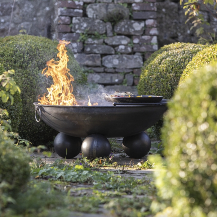 The Ball Stand fire pit features spherical feet to add a slight twist to a traditional steel bowl. This fire pit is handmade in the UK using 3mm British steel which is strong and durable. Add an optional lid to cover the fire pit when not in use and a half moon BBQ rack to allow you to cook on as well as keep warm.