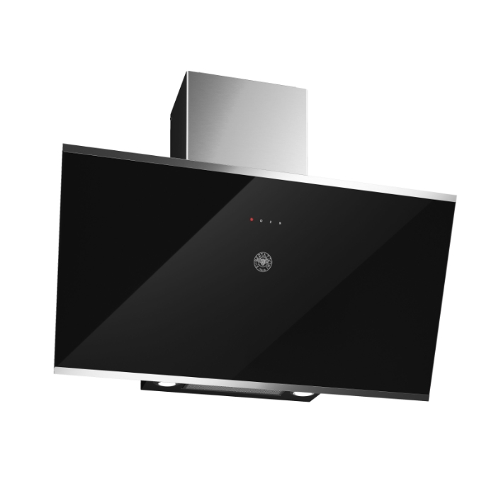 This Bertazzoni KV90MOD1NA Modern Series 90CM vertical inclined hood is finished in black glass. It has a single motor offering three speeds and effective aluminium filters. Touch controls make it easy to adjust and two bright LED lights make it easy to see what you are doing on the hob. The powerful motor extracts 700 m3h max and is rated A+ energy class.