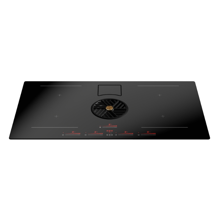 Integrated ventilation: The integrated downdraft function can be operated in re-circulation or outside venting mode and is equipped with 10 speed levels and an auto setting. The engineering of the air intake features a water leaks protection system.