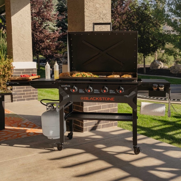 The griddle comes with a built-in hood, which allows for more versatile cooking options. The hood is adjustable, so you can control the amount of heat and smoke that reaches your food. This feature is particularly useful when cooking delicate items like fish or vegetables. The griddle is powered by propane and features four independently controlled burners, which allow you to cook different items at different temperatures simultaneously. This is great when cooking a variety of dishes for a large group of people.