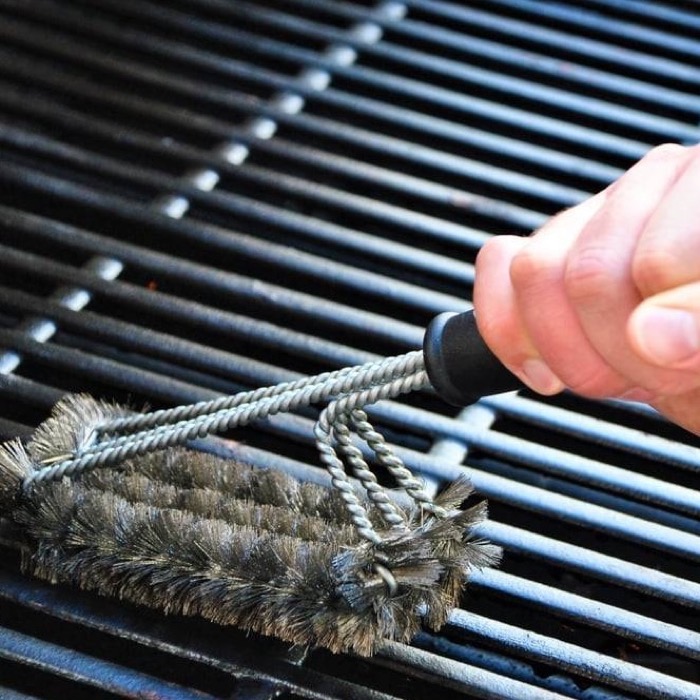 5. Once the dirt on the grates has loosened, scrub them with a grill brush or scraper to remove any stubborn charred bits. If you don’t have a brush on hand, you can use a crumpled-up ball of foil dipped in warm water.