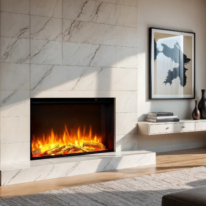 The Celsi DLX 750 Electric Fire is a polished, fascia-less wall inset fire that brings sophistication and warmth to modern interiors. Designed with a glass-fronted display, this premium electric fire offers a realistic flame experience powered by Multi Flame Projection® and Living Ember Bed® technology. The authentic woodland ceramic logs rest over a glowing ember bed, creating an inviting and immersive ambiance. With adjustable flame speed, you can easily customise the fire’s appearance to match your mood or setting.
