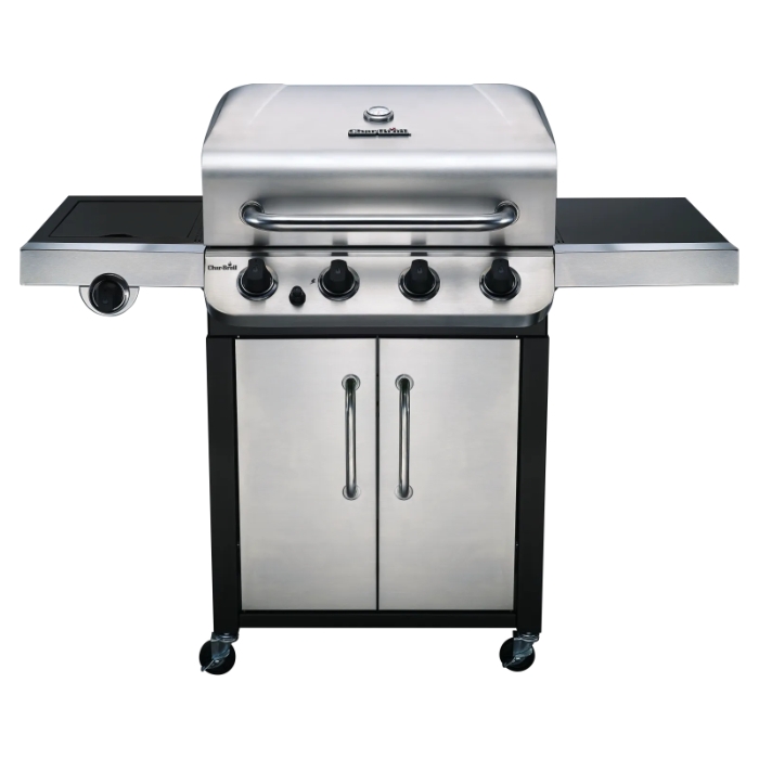 The Char-Broil Convective 440 S features four stainless steel burners and a 3kW side burner. It has a modern stainless steel cabinet design with doors and the stainless steel burners emit flame from the top for even cooking and added durability.