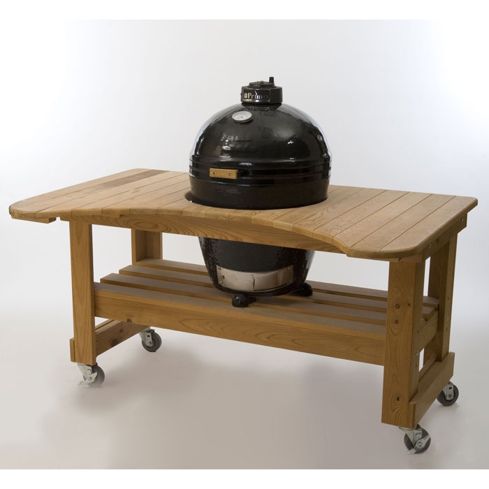 This beautiful handcrafted Cypress table is custom-made for the Primo Kamado grill. Add this table to your grill to bring your entire kitchen to your outdoors. With enough space either side and in front, this Cypress table allows you to cook for a host of people at once. The sturdy table also comes with wheels to manoeuvre around your garden which the front two can be locked into position.