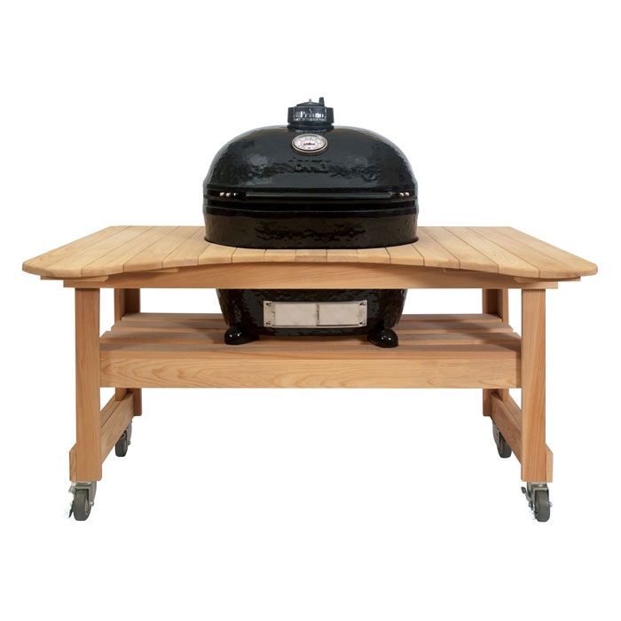 This beautiful handcrafted Cypress table is custom-made for the Primo Oval XL 400 grill. Add this table to your grill to bring your entire kitchen to your outdoors. With enough space either side and in front, this Cypress table allows you to cook for a host of people at once. The sturdy table also comes with wheels to manoeuvre around your garden which the front two can be locked into position.