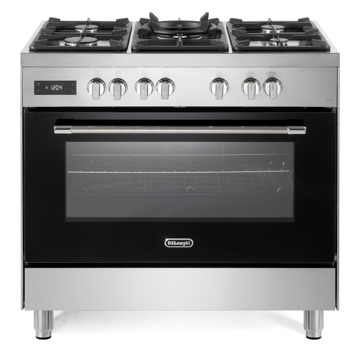 DeLonghi 90cm Professional Single Cavity Dual Fuel Range Cooker, Stainless Steel