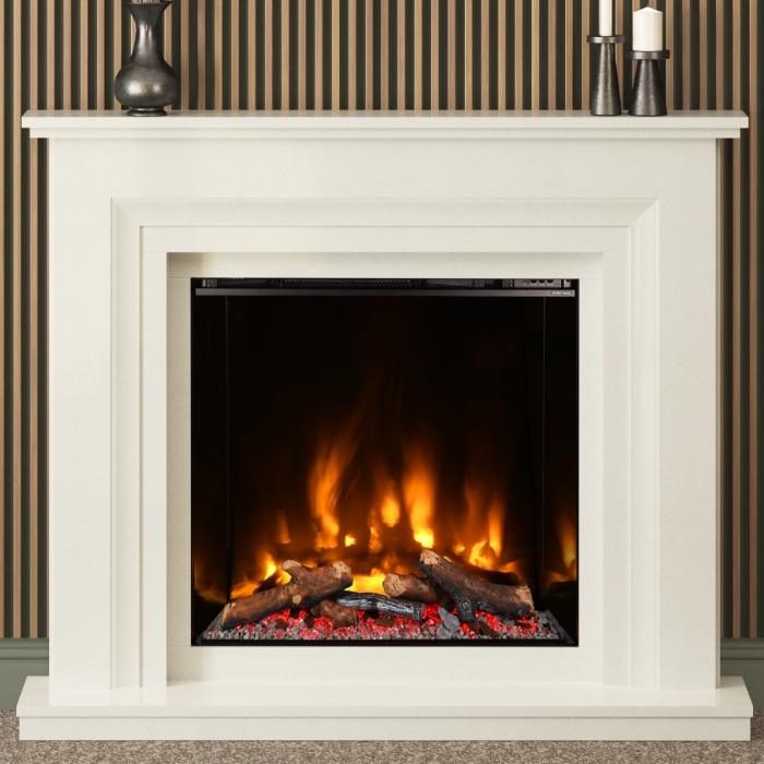 At the heart of the Kudosa suite lies the Arteon 750-3SP electric fire, part of the renowned PRYZM collection. Featuring a high-definition 5D flame effect with three flame colour options and five brightness settings, it offers a mesmerising and realistic flame display. The fuel bed, complete with four dressing options, boasts 13 colour choices and a rotation setting, allowing you to create the perfect ambiance. The glowing ember effect and illuminated loose logs add an extra layer of realism, making the experience even more immersive and enjoyable.