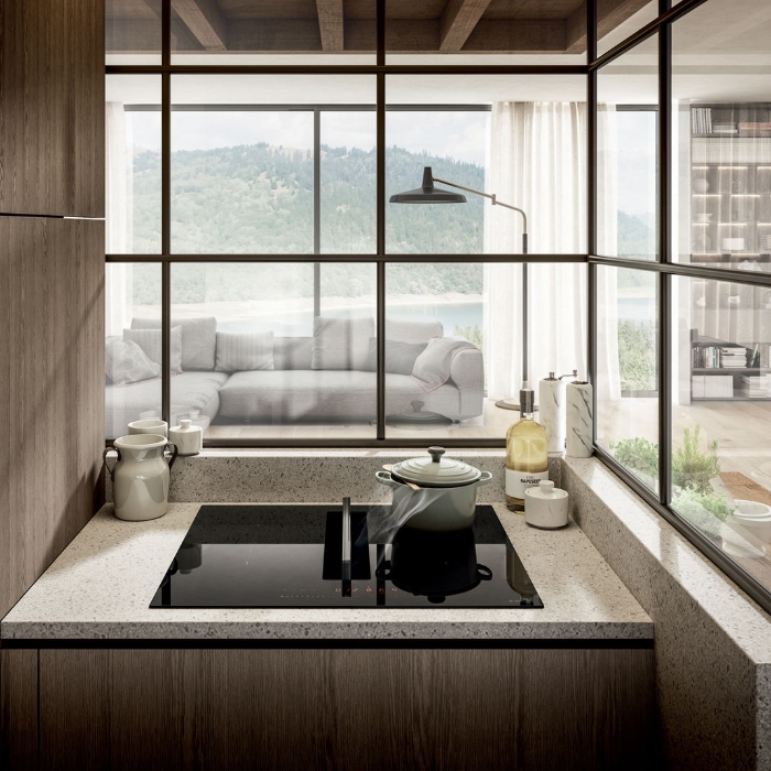 These days, the living room and kitchen tend to blend together into one single space. Therefore, multifunctional solutions that make the best use of available space, have become indispensable for very informed customers. Designed to satisfy the needs of those who, even in tiny spaces, refuse to compromise on excellence. Nikolatesla Fit is the induction hob with integrated extraction that can be installed in a 60cm base, only taking up 60- or 72cm of surface space.