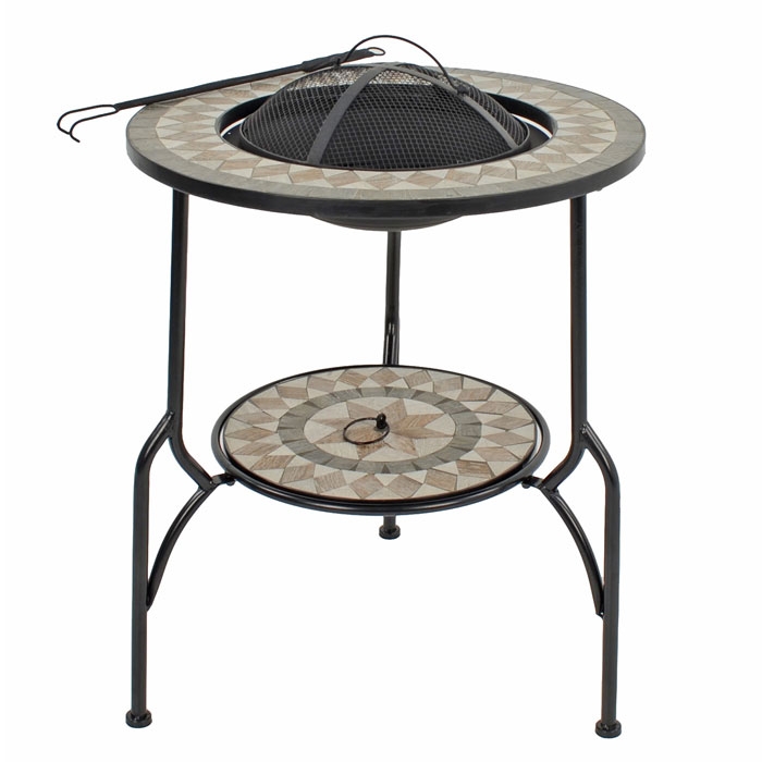 The fire pit is at normal table height meaning it is ideal to use as a bistro table when not being used as a fire pit.. Ideal for those chilly evenings when the garden is still to be enjoyed, warm things up with this stunning little firepit that comes with a fire bowl, charcoal grid, domed mesh spark arresting lid and tool. Also included is a matching ceramic plate to cover the fire bowl when not in use, converting it from a fire pit to a coffee table.