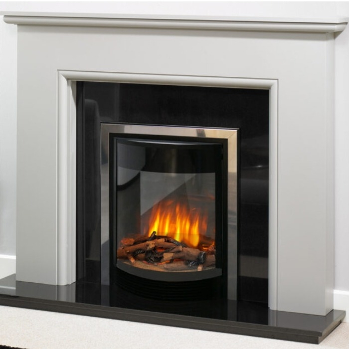 Add some heat to your room with the Evonic Sphera Inset Electric Fire. Available in a Chrome trim. The curved front glass is a modern design that isn't seen anywhere else. Its curved design adds depth to the fire and frames its modern 3D design flame effect that rises from its log fuel bed below, effortlessly creating a glowing fire display.
