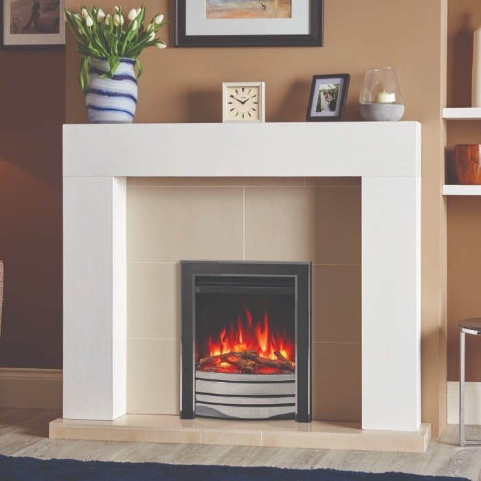 - Includes a realistic log fuel bed with glowing ember effect, creating the cosy appearance of a real fire