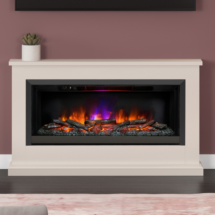 The FLARE Hansford Grande 52" Timber Electric Fireplace Suite is the perfect balance of contemporary elegance and modern functionality. Designed with clean, minimalistic lines, this fireplace features a sleek, landscape-style frame that enhances the sense of space in any interior. Finished in pearlescent cashmere, it brings a touch of understated luxury to both modern and traditional homes. Its easy flat wall fix installation makes it a hassle-free addition to any living space, requiring no chimney or recess.