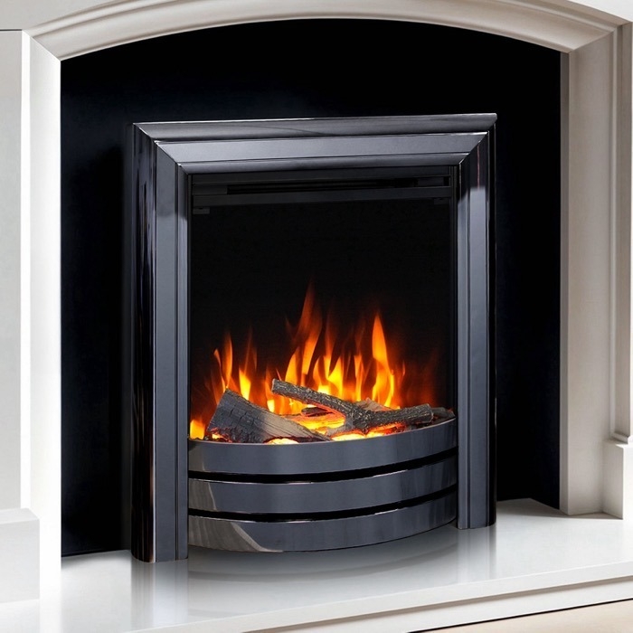 - Contemporary open-fronted electric fire with a stylish, high-end appearance