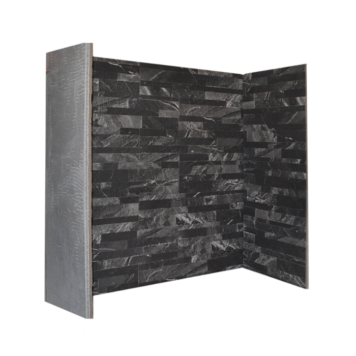 - Dark layered stone effect in shades of black and grey