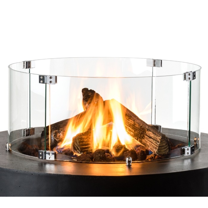 - Round tempered glass windscreen for fire pit tables, adding protection and aesthetic