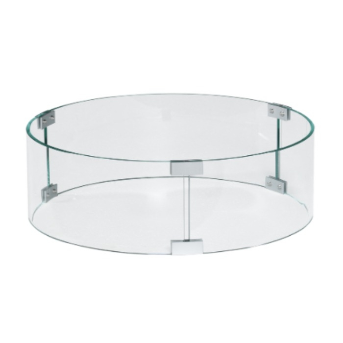 - Round tempered glass windscreen for fire pit tables, adding protection and aesthetic