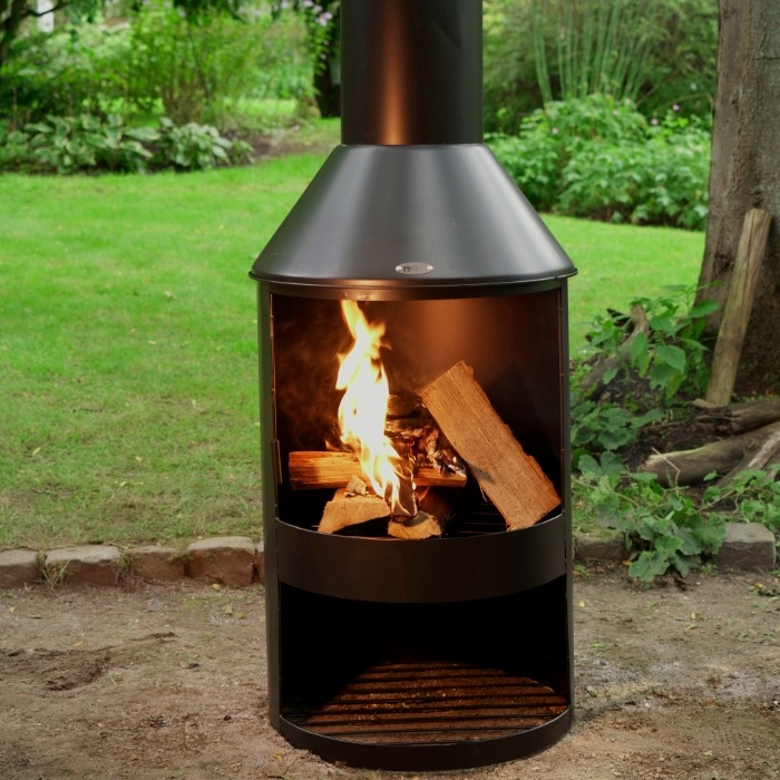 - Tall chimney efficiently directs smoke away from seating areas