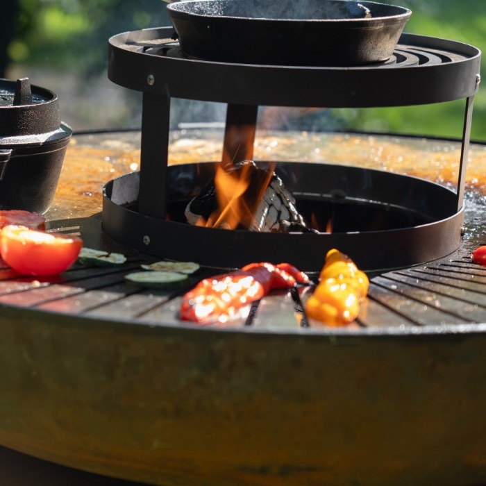 Enhance your outdoor cooking experience with the HEAT Turret Grill, a smart and stylish accessory designed exclusively for the HEAT Bakka Cooking Unit. Crafted in sleek black steel, the Turret Grill seamlessly fits on top of your Bakka, transforming it into a multi-level cooking station. Its innovative design allows you to elevate your culinary skills while adding both functionality and flair to your outdoor kitchen setup.
