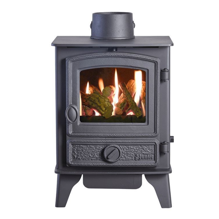 The Hunter Hawk 4 Gas Stove brings warmth, style, and smart functionality into any home. Compact and beautifully crafted, it fits naturally into both traditional and modern interiors. With a choice between a classic roped-effect door or a clean, contemporary design, it’s easy to tailor the look to suit your space. This stove delivers a heat output between 2.21 and 3.7 kilowatts, making it a perfect option for small to medium-sized rooms. The high-definition log fuel bed creates the comforting look of a real wood fire, offering a comforting and warm atmosphere. It also comes with a remote control, so adjusting the heat and flame effect is simple and convenient.