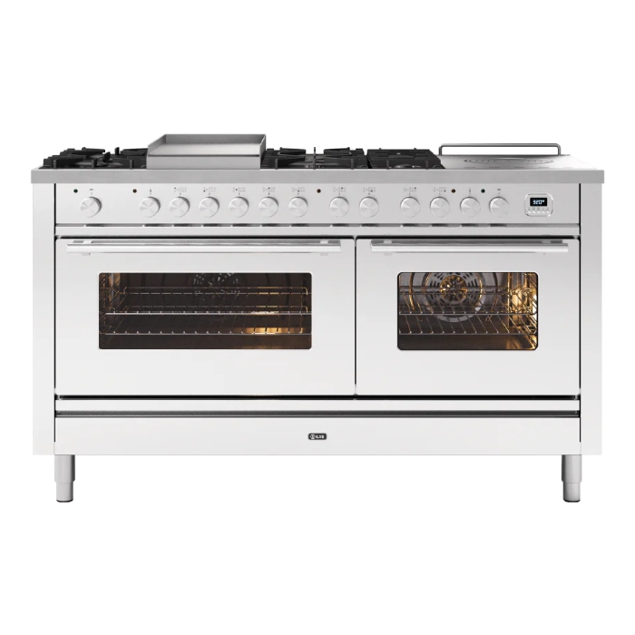 The Roma 150cm Fry Top and Coup de Feu range cooker combines cutting-edge technology with professional-grade features to deliver an exceptional cooking experience. Designed with two spacious ovens, it offers ample room for preparing multiple dishes at once. This range cooker features ILVE’s unique E3 precision temperature control, allowing for fine-tuned heat adjustments in 5-degree increments. Each ILVE range cooker is hand-built by skilled Italian craftsmen near Venice, ensuring exceptional quality.