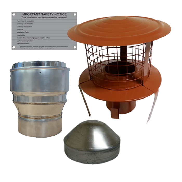 For use with 175mm diameter multifuel flexible flue liner - This installation pack contains a terracotta pot hanging cowl, nose cone, increasing adapter from 150mm or 125mm vitreous enamel or stainless steel single wall flue pipe to 175mm multi-fuel liner and a chimney notice plate.