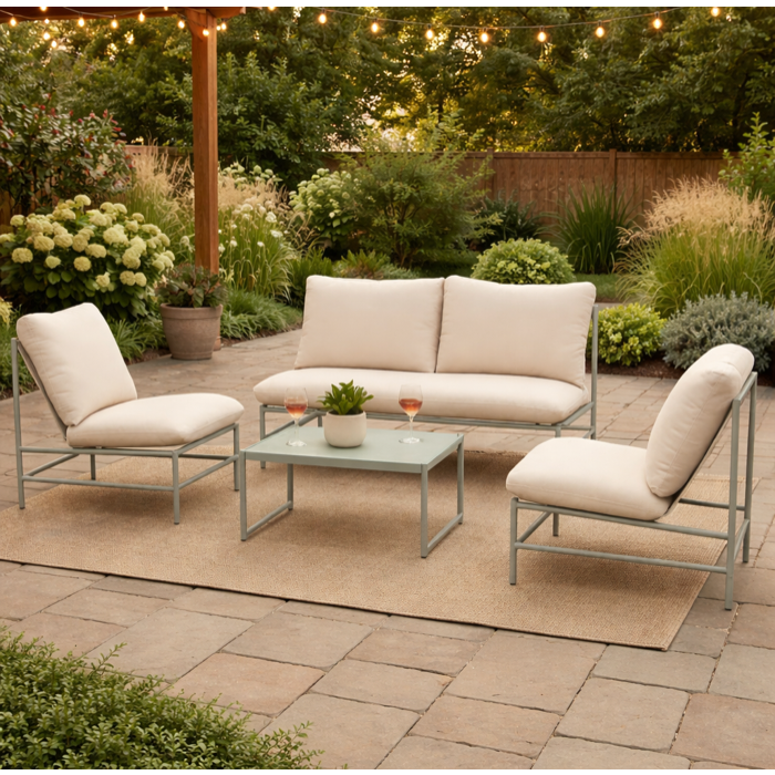 Its versatile design complements a wide range of outdoor spaces modern, minimalist, or nature inspired while the harmonious colour palette and clean lines elevate any patio, garden, or terrace. Durable, stylish, and comfortable, this lounge set transforms everyday outdoor living into a luxurious, inviting experience.
