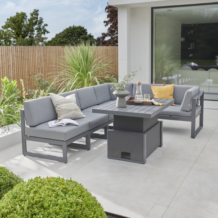 The Menos Versa Corner Lounge Set from Kettler is a modern and stylish way of enjoying your garden, patio or conservatory. Available in a chic-looking grey finish, the Versa will complement most environments.