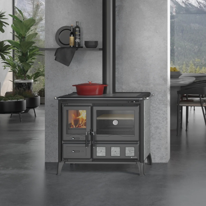 The La Nordica Gardenia XXL is a premium wood-burning cooker that blends powerful heating performance with practical cooking functionality. With a heat output range of 4.5–10.5 kW and an impressive efficiency rating of up to 88.9%, this stove is ideal for heating large spaces up to 301 m³. Whether you choose the sleek anthracite black enamelled steel or the elegant natural stone finish, the Gardenia XXL adds timeless charm and warmth to any home.