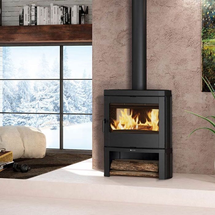 The La Nordica Jennifer 2.0 wood burning stove is contemporary curved stove with an curved cast iron door. The main body of the stove is black with an cast iron top and outer layer. The La Nordica Jennifer has a nominal output of 7.5kW with a maximum output of 9.2kW which gives this stove the ability to provide sufficient heat to medium to large sized rooms.