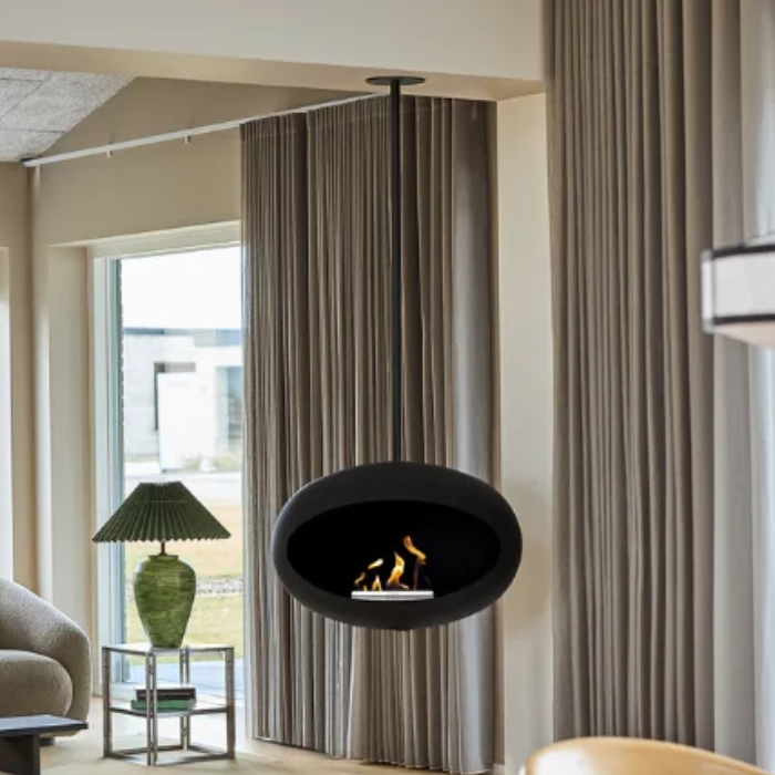 Made from recycled cast iron with a durable powder-coated finish, the dome combines strength with a refined contemporary style. With four pole lengths and three pole colour options available, the Dome 625 Sky can be customised to suit your interior. It is particularly well suited to open plan rooms, high ceilings and modern living spaces that benefit from a striking focal point.