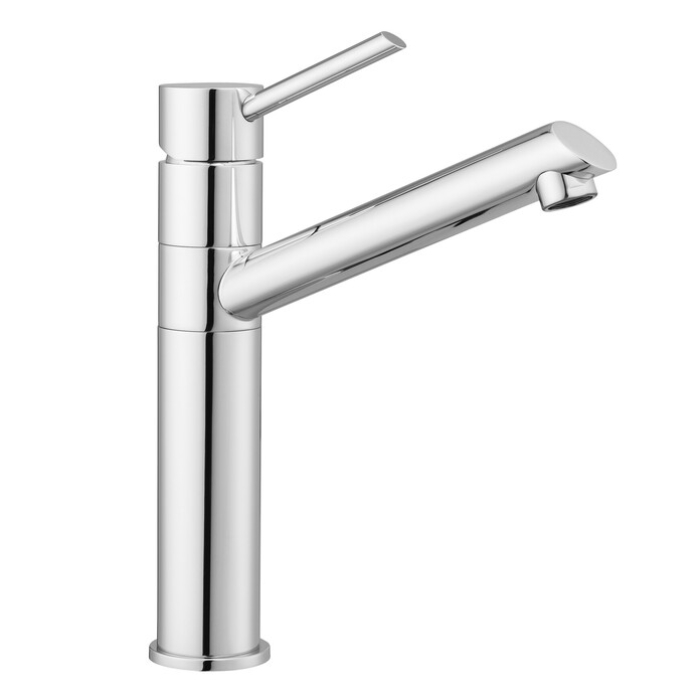 It features a single lever handle design and anti-splash spout with a honeycomb aerator that mixes air with water to emit a water flow with no splash. Suitable for all pressure systems.
