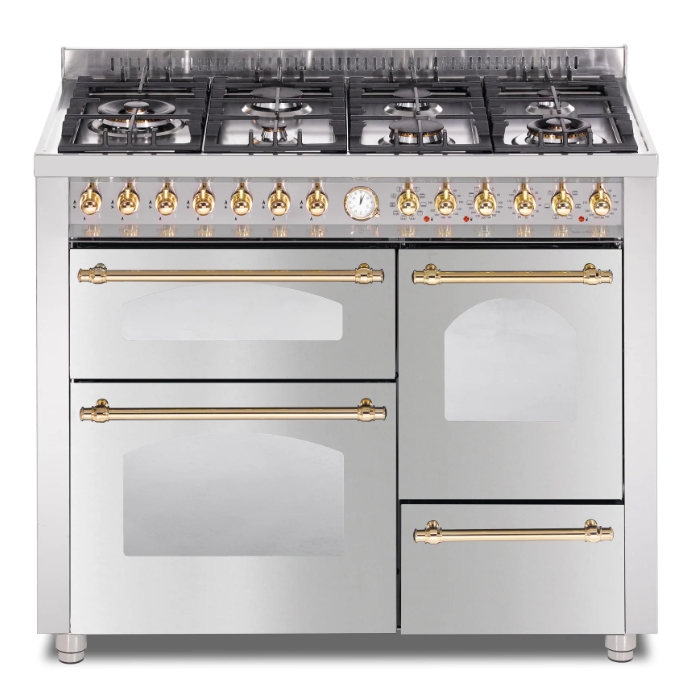 The Lofra Dolcevita 110cm Dual Fuel Range Cooker is the perfect blend of classic charm and modern innovation, designed for those who appreciate both timeless aesthetics and high-performance cooking. Inspired by traditional Italian craftsmanship, this range cooker brings an elegant, vintage touch to any kitchen while offering cutting-edge functionality. With three electric ovens and a spacious gas hob featuring seven burners, the Lofra Dolcevita 110cm ensures versatility and precision for every culinary creation.