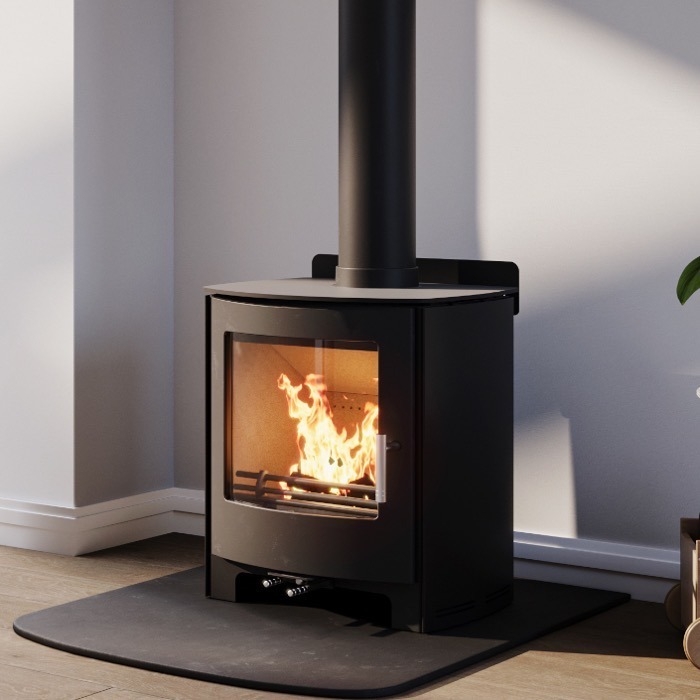 - 12mm hearth compatible stove offers flexible installation in modern homes with slimline hearths
