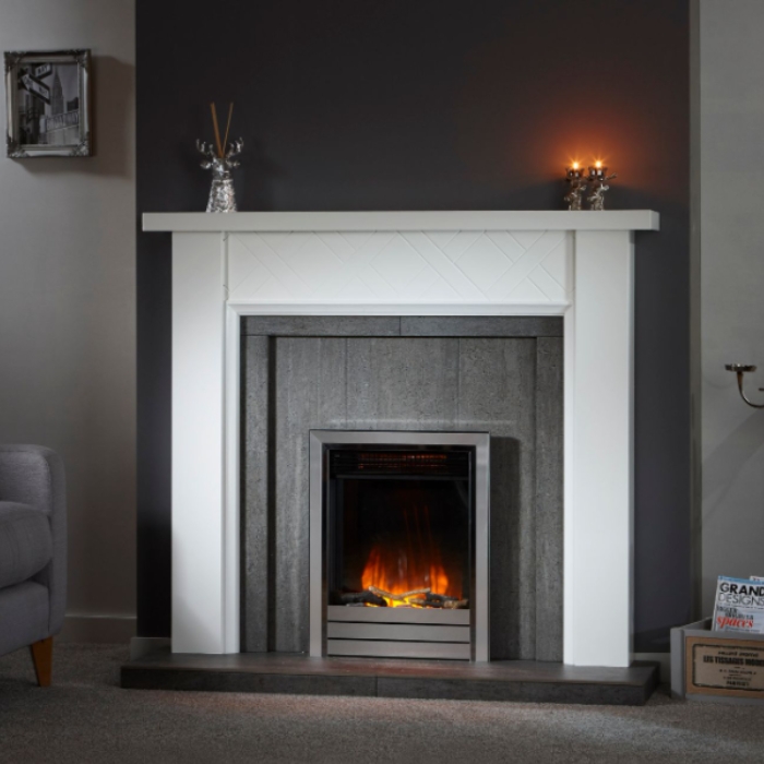 The OER Tweed 54" fireplace surround is available in a white painted finish. It is a simplistic surround with cross detailing on the mantlepiece, the Tweed surround is suitable for use with gas and electric fires only.