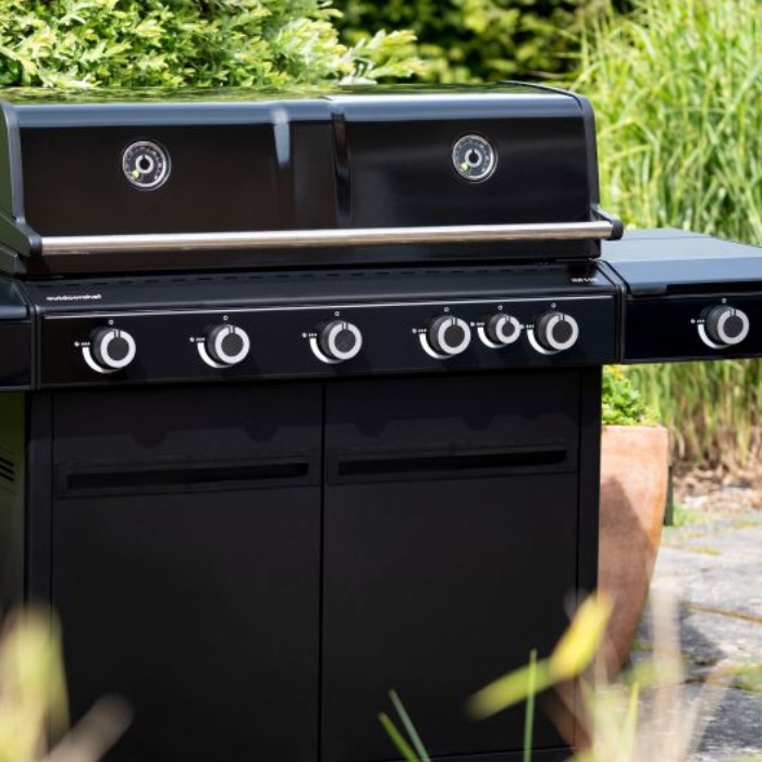 - Rear rotisserie burner with lateral positioning maximises grill space while ensuring even heat for spit-roasted meats and poultry