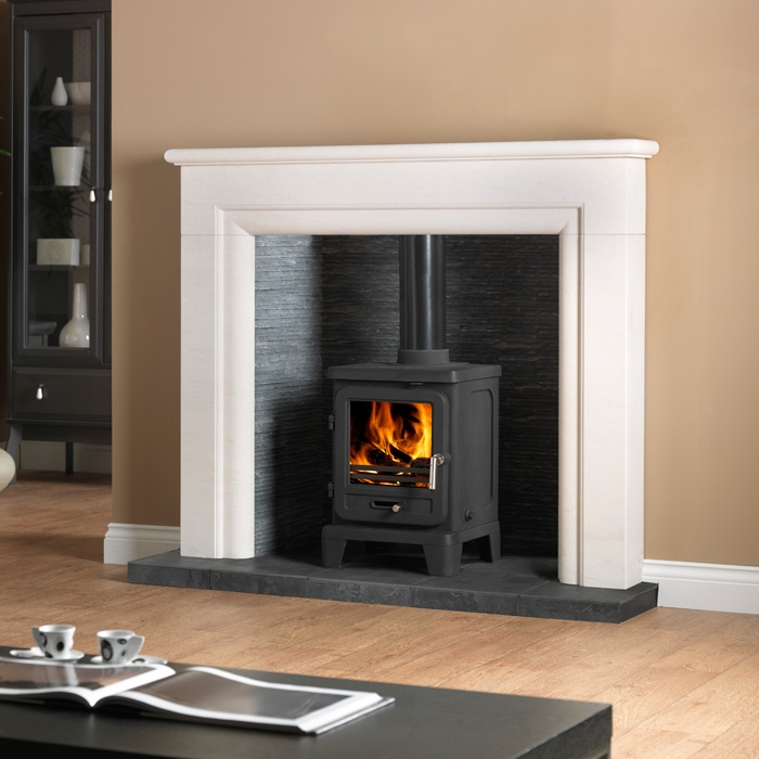 Natural limestone from which the Hollington fire surround is crafted features characteristic darker veining intermingled with small fossils of plants and animal life, all adding to the beauty and individuality of each unique surround. Know for its endurance and versatility the neutral grey and light tones of Portuguese limestone offer a contrast in material to black cast iron or steel stove that will often sit inside.