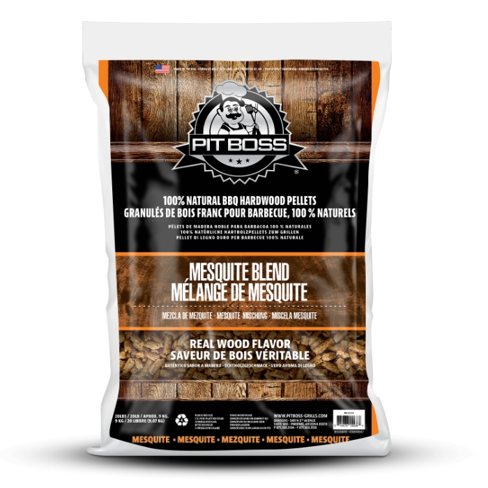 The Pit Boss wood pellets are suitable for all wood-fired pellet grills however they are great when used in a Pit Boss grill. The Mesquite Blend is versatile and can be used with all types of food but works great with steak and pork. It has no artificial flavours, spray scents, glues or chemicals and is naturally sourced from Northern America.
