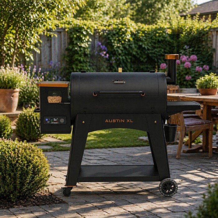 Designed for convenience and versatility, the Austin XL features a generous 30lb pellet hopper for extended cooking sessions, along with two-tier porcelain-coated cast iron cooking racks for maximum capacity. With built-in meat probe ports, practical storage shelves, and easy mobility, this grill is ready for any occasion. Offering 8-in-1 cooking functionality—including smoking, baking, roasting, and grilling—it’s a complete outdoor cooking solution, backed by a 5-year manufacturer’s warranty.