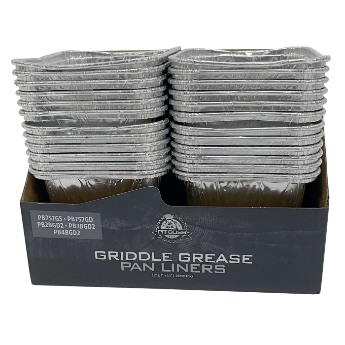 Keep your plancha clean with ease with these Pit Boss Foil Grease Pan Liners for the Ultimate Plancha Series. These disposable foil pan liners come in a pack of 6 which means you never have to worry about wiping out your grease pan ever again. Just remove and replace it for a mess-free experience. These foil grease pan liners are compatible with 2, 3, and 4-Burner Ultimate Planchas.