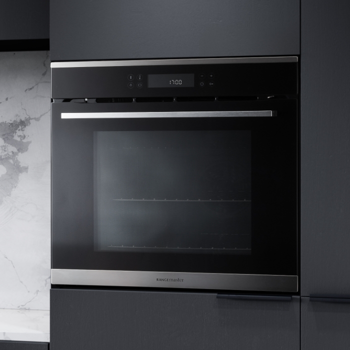 Designed with a sleek black glass and stainless steel finish, this oven brings a modern, high-end aesthetic to any kitchen. The touch controls and white LED display offer intuitive operation, while the included cooking probe ensures perfectly cooked meats and roasts every time. With an A-rated energy efficiency, a spacious 69-litre capacity, and a two-year parts and labour warranty, this Rangemaster built-in oven is a top-tier choice for those who love to cook without the hassle of cleaning.