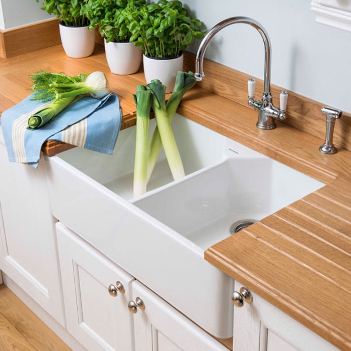 The Rangemaster Double Bowl Belfast CDB800WH Ceramic Sink embraces the classic good looks of a Belfast-style sink. Made from high-grade fire-clay ceramic with ultra smooth surfaces throughout, the Double Bowl Belfast boasts extra large, deep bowls which are perfect for washing trays and pans that won't fit in the dishwasher.