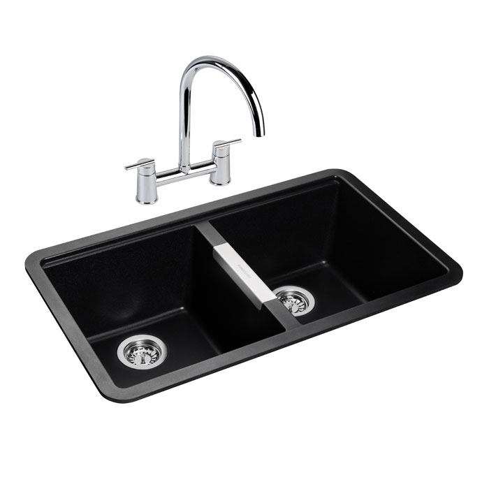 The Rangemaster Paragon PAR3641 Igneous Sink is a two bowl sink with deep granite bowls which can be under-mounted for a sleek and seamless work surface. With a modern geometric design, the Rangemaster Paragon sink is the ideal match for composite work surfaces and fits neatly within a standard 60cm wide cabinet.