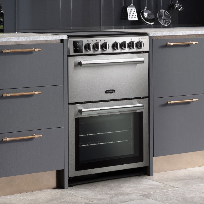 The Rangemaster Professional Plus 60cm Induction Cooker brings the style and functionality of a professional kitchen into a compact space, making it ideal for modern homes. It is available in both black and stainless steel, both of which are accompanied by a chrome trim. Designed for precision cooking, it features an easy-to-clean induction hob and two ovens.