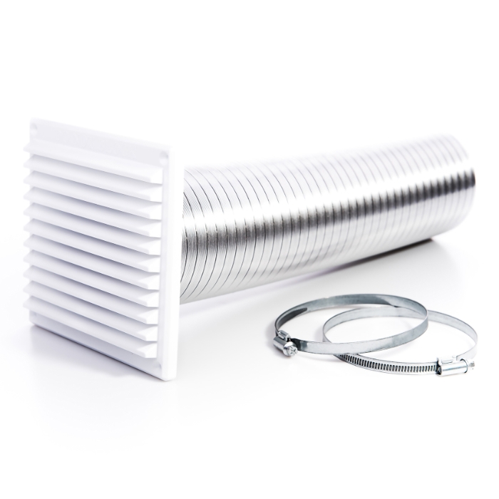 - Ducting = 100mm Internal Diameter(102mm External Dia) x 1.5m expanded (supplied compressed 410mm).