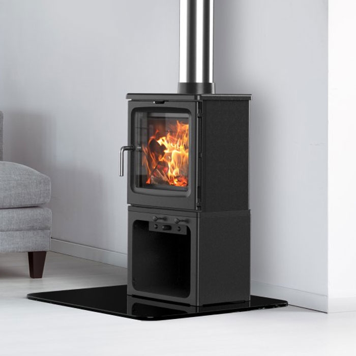 The Saltfire Peanut 5 Tall incorporates the same great features as the standard model with the addition of an integrated log store. This log store raises the stove up by 200mm giving it the option to be installed as a freestanding piece in the room and mounted on a 12mm non-combustible hearth.